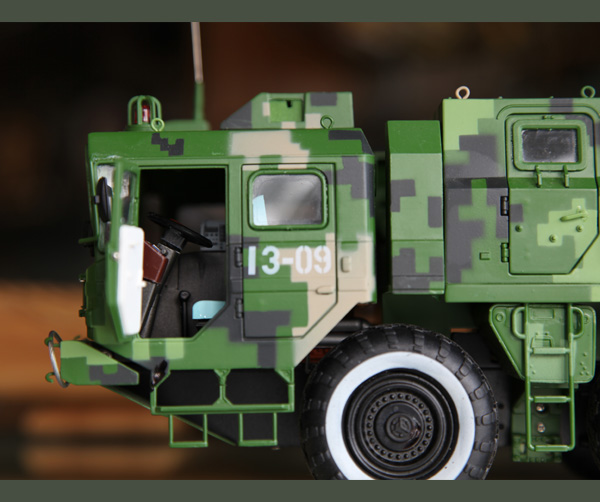●300毫米火箭炮-北京軍事仿真模型后視鏡、工具箱、車燈、散熱柵、雨刷、牽引桿、警燈警報等均仿真做出。