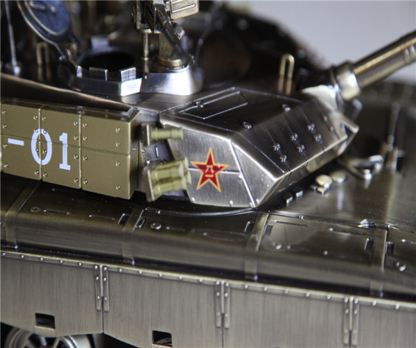 99坦克在相繼出了1:50/1:30的比例后,現(xiàn)全新推出1:18,99改高仿真大比例模型,全金屬制作,帶精美仿紅木底座,高檔皮質(zhì)手提箱,模型炮塔可以360度噠噠的旋轉(zhuǎn),炮塔能夠360度轉(zhuǎn)動,炮口可上下擺動,履帶采用仿真履帶,金屬履鏈能自如轉(zhuǎn)動!讓收藏者感覺到隆隆的鐵甲雄風(fēng)!車輪具有減震效果.整模型全合金材質(zhì),具有強烈的質(zhì)感和視覺沖擊力,并使用了60周年閱兵最新的數(shù)碼迷彩涂裝和金古鋼。全金屬履帶可以運動自如,機槍,后備油箱,做工無一不精,可謂模型中的鼎力之作。